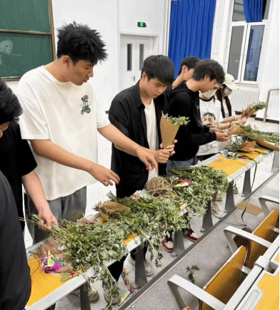 为传承中华优秀传统文化,增强我院学生对传统节日的认同感和归属感,2025年5月29日19点40分,在11号楼216教室,建筑与测绘学院举办了一场别开生面的艾草花束制作活动,共迎端午佳节。