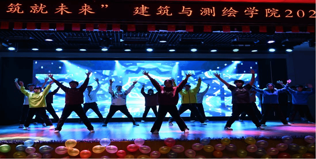 晚会在开场舞《we rock》的动感节拍中拉开序幕,舞者们活力四射的舞姿瞬间点燃全场氛围,展现出建测学子昂扬向上的精神风貌。